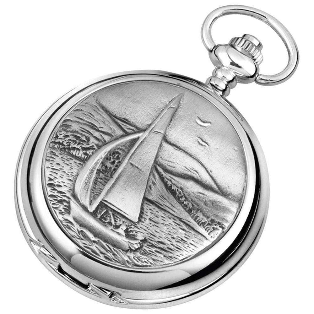 Woodford Sailing Chrome plaqué Double Hunter Hunter Skeleton Pocket Watch - Silver