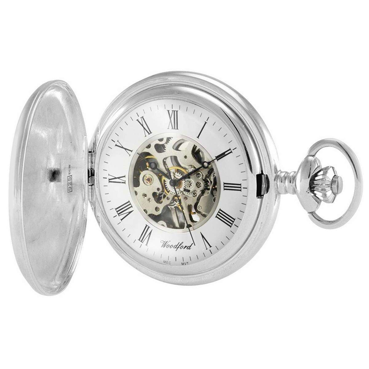 Woodford Sterling Silver Full Hunter Pocket Watch - Silver