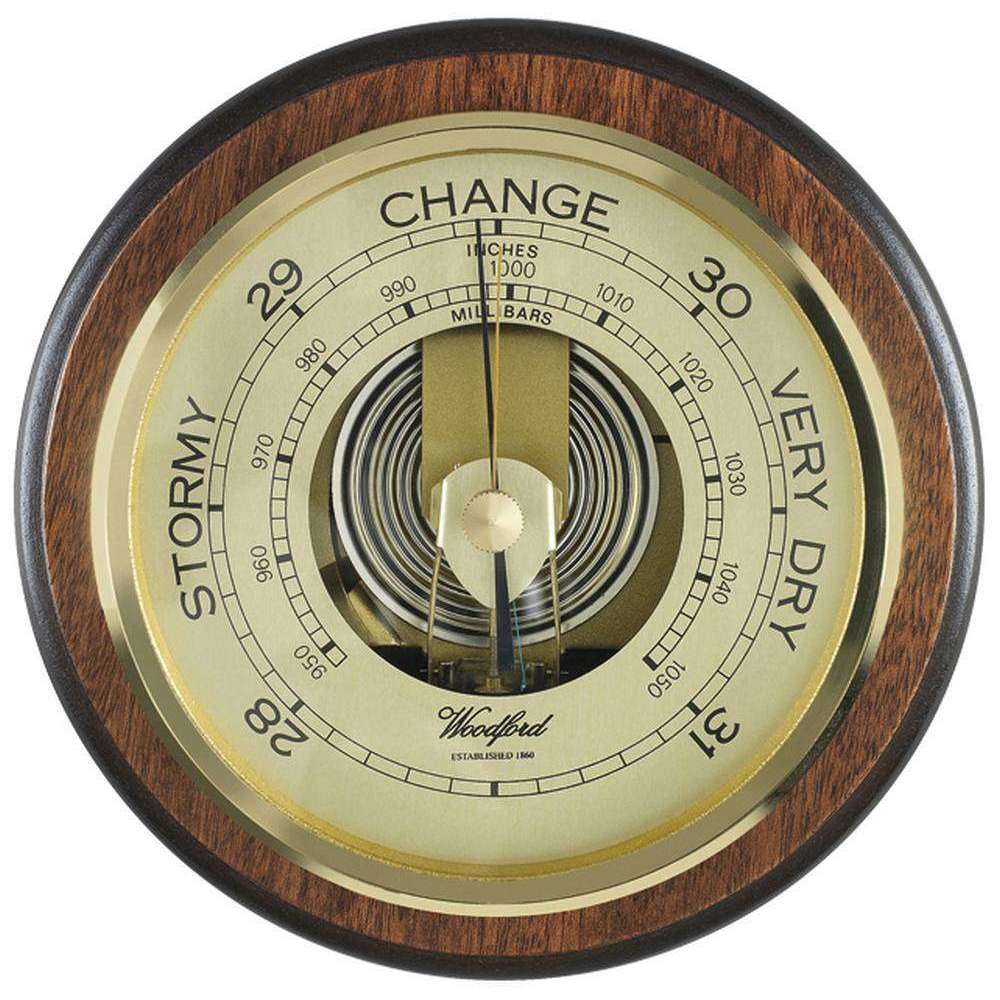 Fabriquée en bois d'acajou est ce baromètre en face unisexe brun / bronze par le designer Woodford. Il mesure le cadran: 12,7 cm. Woodford a fait ce baromètre en tracade en Grande-Bretagne. Toutes les horloges sont complètes avec Woodford Packaging. Le baromètre en face de Woodford - Brown / Bronze est le parfait prévisionniste météorologique à l'ancienne avec un mouvement allemand. Qui a besoin de toutes ces applications modernes pour vous dire comment le temps change lorsque cette belle pièce le fait aussi bien. Il est certain d'ajouter une touche classique à toute maison donnant à votre maison une élégance intemporelle.
