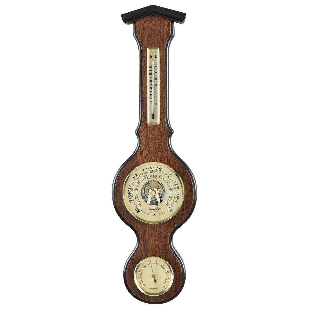 Baromètre, thermomètre et hygromètre en face de Woodford - brun / bronze