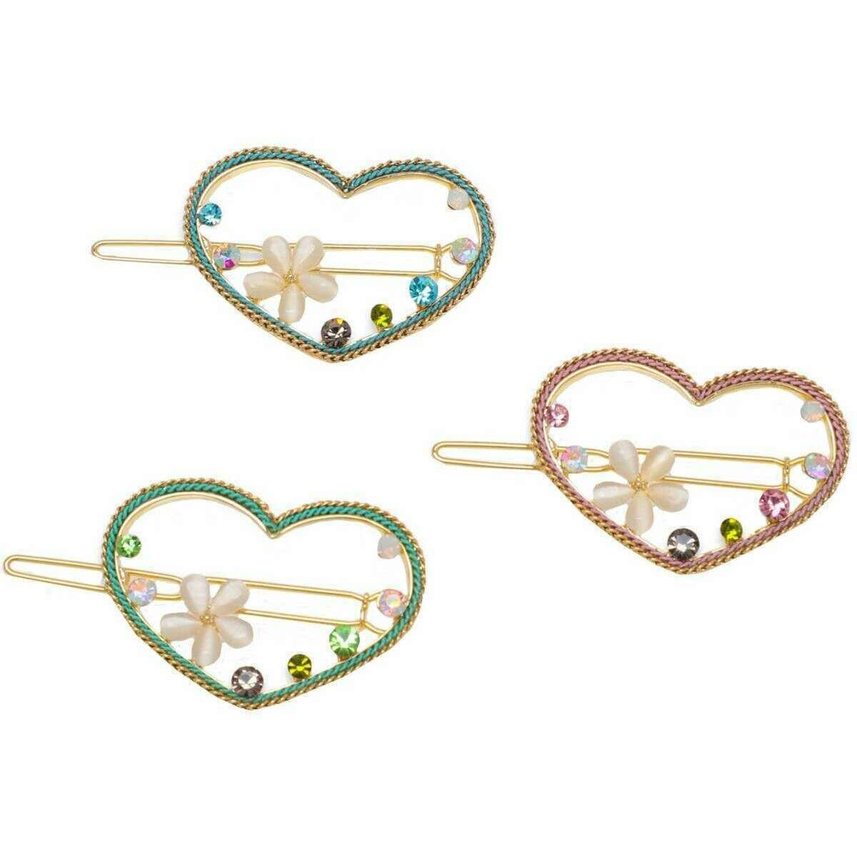 Zelly 3 Assorti des clips de diapositives de cheveux de cœur fini à la main - or