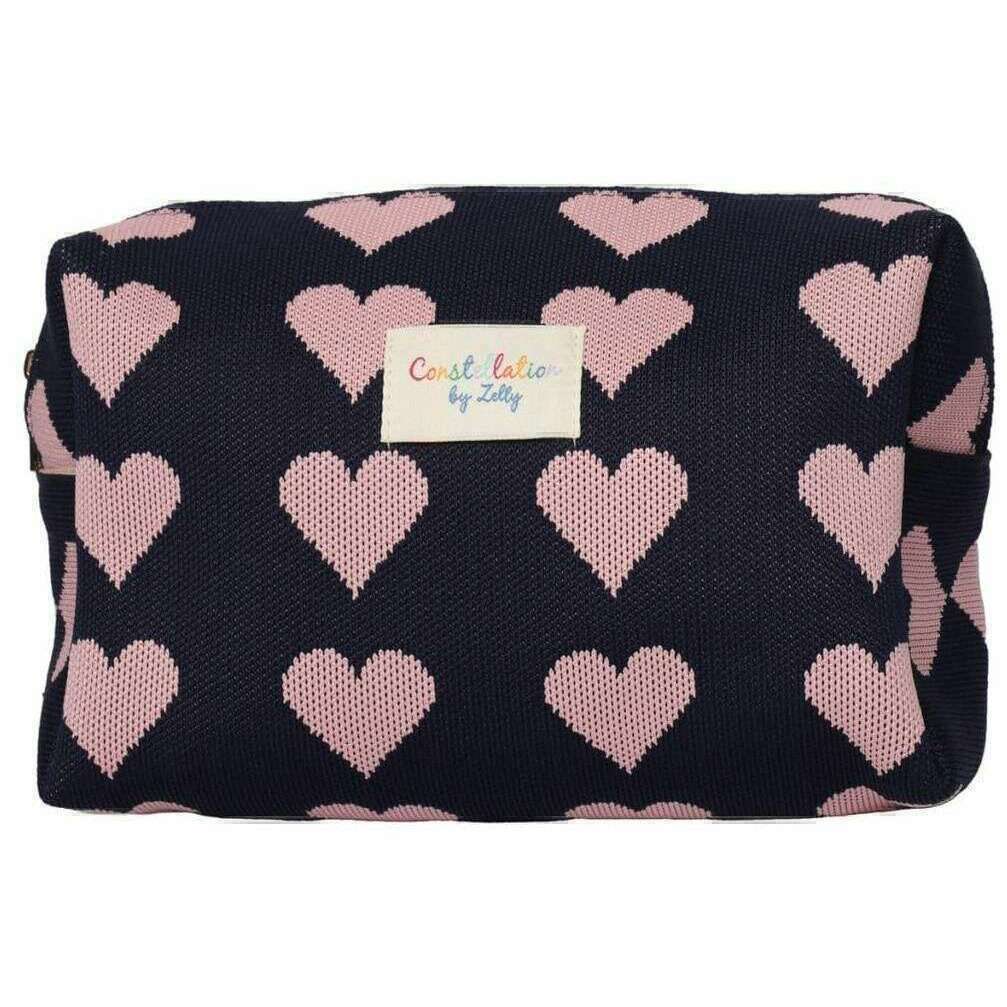 Sac de lavage tissé Zelly Hearts - Marine / Pink